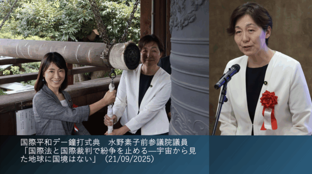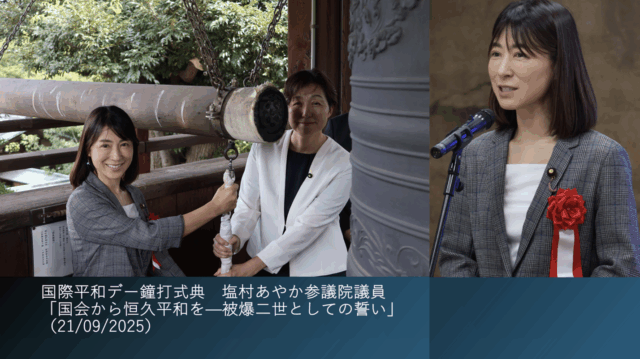 International Day of Peace Bell-Ringing Ceremony — Senator Ayaka Shiomura: “From the Diet Toward Lasting Peace—A Pledge as a Second-Generation Hibakusha” (21/09/2025)