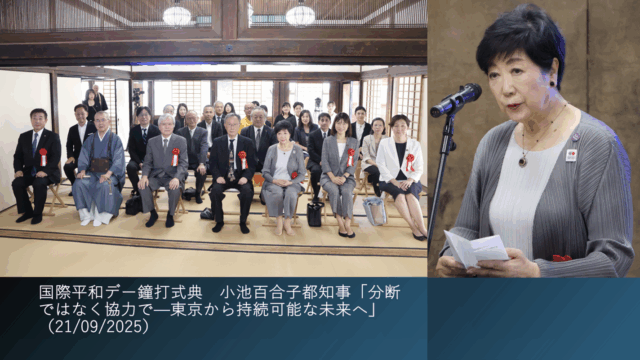 International Day of Peace Bell-Ringing Ceremony — Governor Yuriko Koike: “Cooperation, Not Division—From Tokyo Toward a Sustainable Future” (21/09/2025)