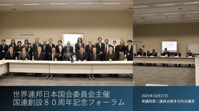 国連創設80周年記念フォーラムが世界連邦日本国会委員会主催で開催(27/10/2025)