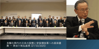 多極化時代の日本の役割と安保理改革への具体提案 ― 長谷川祐弘座長 (27/10/2025) 2025-10-27 0 comment 長谷川祐弘座長(グローバルガバナンス推進委員会)は、本フォーラムで複数回にわたり発言し、難民支援の実例紹介から議論を開くとともに、日本・韓国… Read More >>