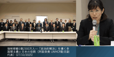 強制移動1億2300万人—「政治的解決」を導く多国間主義と日本の役割(阿阪奈美 UNHCR駐日副代表)(27/10/2025) 2025-10-27 0 comment UNHCR駐日副代表の阿阪奈美氏は、強制移動を強いられる人々が世界で1億2300万人に達し、この10年で約2倍に拡大している現状を示し、危機… Read More >>