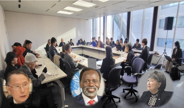 To commemorate the 50th anniversary of the establishment of the United Nations University, the Ministry of Foreign Affairs of Japan hosted a reception attended by Mr. Yasushi Akashi (Special Adviser, Global Peacebuilding Association of Japan), Dr. Sukehiro Hasegawa (President), Ambassador Tadamichi Yamamoto (Vice President), and Professor Miki Sugimura (President, Sophia University; Director, United Nations Association of Japan). (4/12/2025)